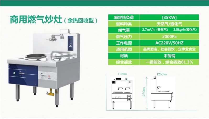 簡介—— 適用于企業(yè)、機關(guān)單位。灶具采用獨特的余熱回收技術(shù),滿足了廚房熱水不耗能的目的,同時大幅降低廚房煙灶溫度,減小了火災(zāi)風(fēng)險,